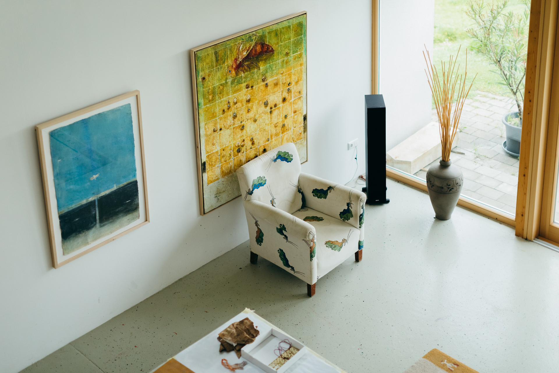 Ich bewundere Manfred. Ich erlebe ihn als sehr authentischen Menschen und Künstler. Sein Leben und seine Bilder passen zusammen. Es geht ja nicht nur um die kreative Tätigkeit – die höchste Kunst ist bekanntlich die Lebenskunst; das weiß auch der Philosoph Leirer. Er ist bodenständig und wolkenstrebend, hat Humor und ein immenses Gefühl für Farben, Formen und Räume. Ich beneide ihn um seine Disziplin, mit der er – trotz aller anderen alltäglichen Erfordernisse – seine Arbeit betreibt. Dass er, der Imker, beim kreativen Akt mit Wachs arbeitet, ist nur schlüssig. Und wie er spielerisch seine Ideen an die Wand bringt, beeindruckt. Auch das Zusehen: das Beobachten des Kompositionsprozesses – und er scheint ganz genau zu wissen, wann ein Bild fertig ist. Ich bin mir bei meinen Gedichten da nie ganz sicher . . . Kunst ist die Erweiterung der Welt. Sie schafft Räume und öffnet Türen. Das Universum von Manfred Leirer betrete ich gerne!